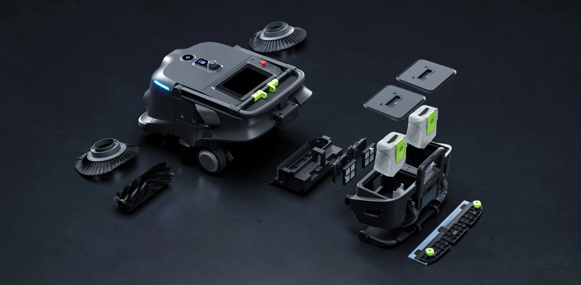Navigates narrow aisles and cleans hard-to-reach areas efficiently.