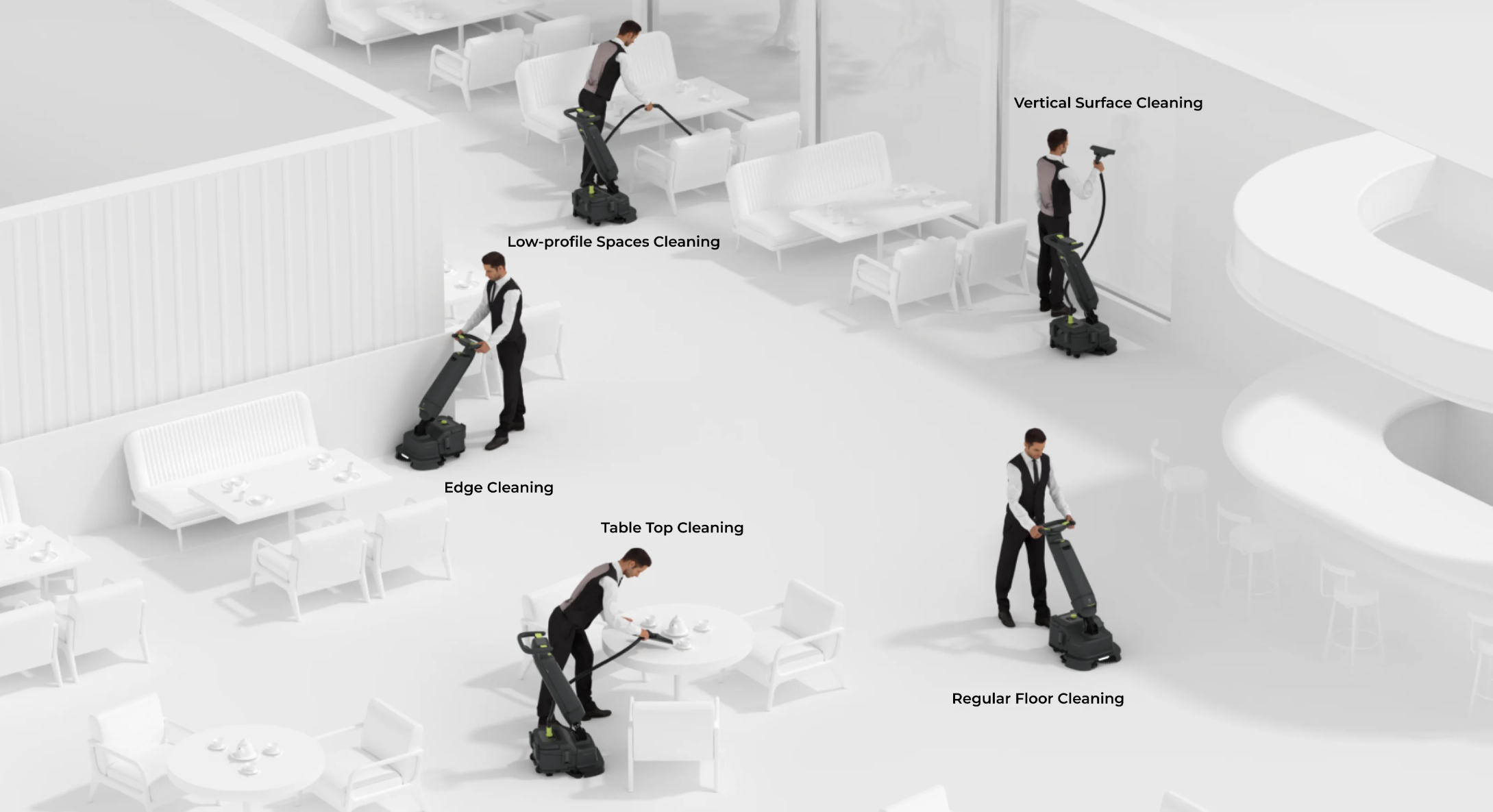 Powerful scrubbing, instant drying, and water-efficient operation in one compact machine.